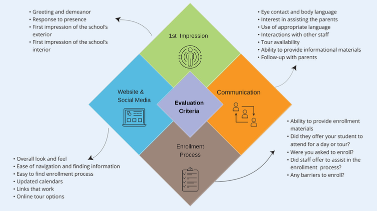 Substantial research has affirmed the importance of first impressions. While they alone will not ensure a family joins your school, a bad first impression is difficult to overcome. For purposes of our review, our reviewers ranked all contact with the school district up to the first contact with a school representative to discuss enrolling. This typically includes an initial phone call to the school and a site visit reviewing the grounds, signage, review of the infrastructure and initial contact with any other families and staff of the school.